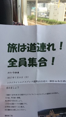 フェイスブックで「みといなと瑞風のお出迎え&魚住酒店で呑みましょう!」というイベントを企画した。
