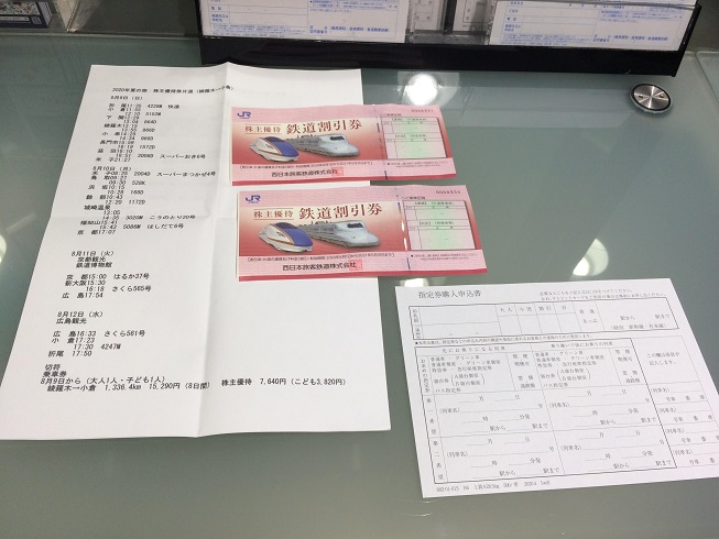 JR西日本の株主優待券で切符を購入します。